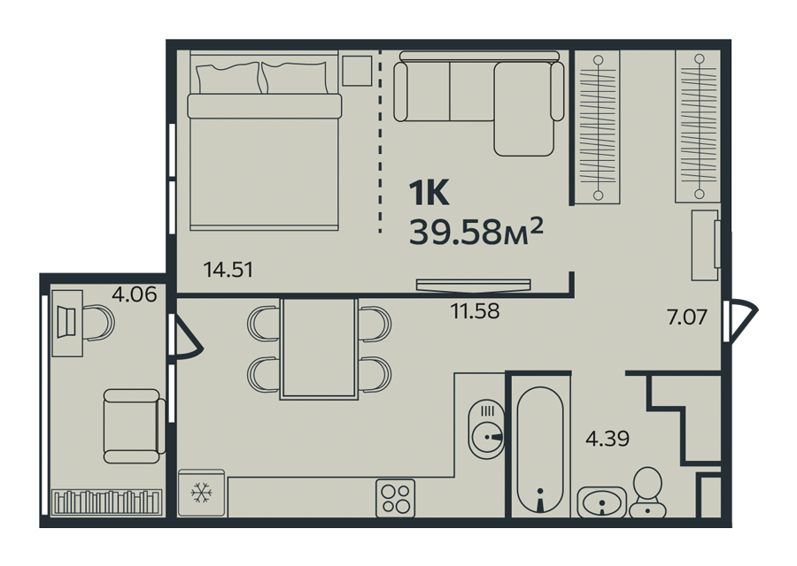 1-комн. кв., 39.58 м², 4/9 этаж