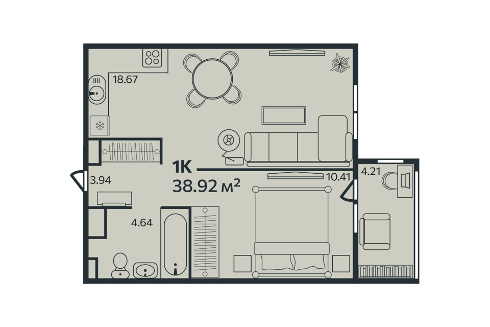 1-комн. кв., 38.92 м², 1/9 этаж