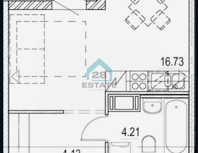 Студия, 23.1 м², 21/28 этаж
