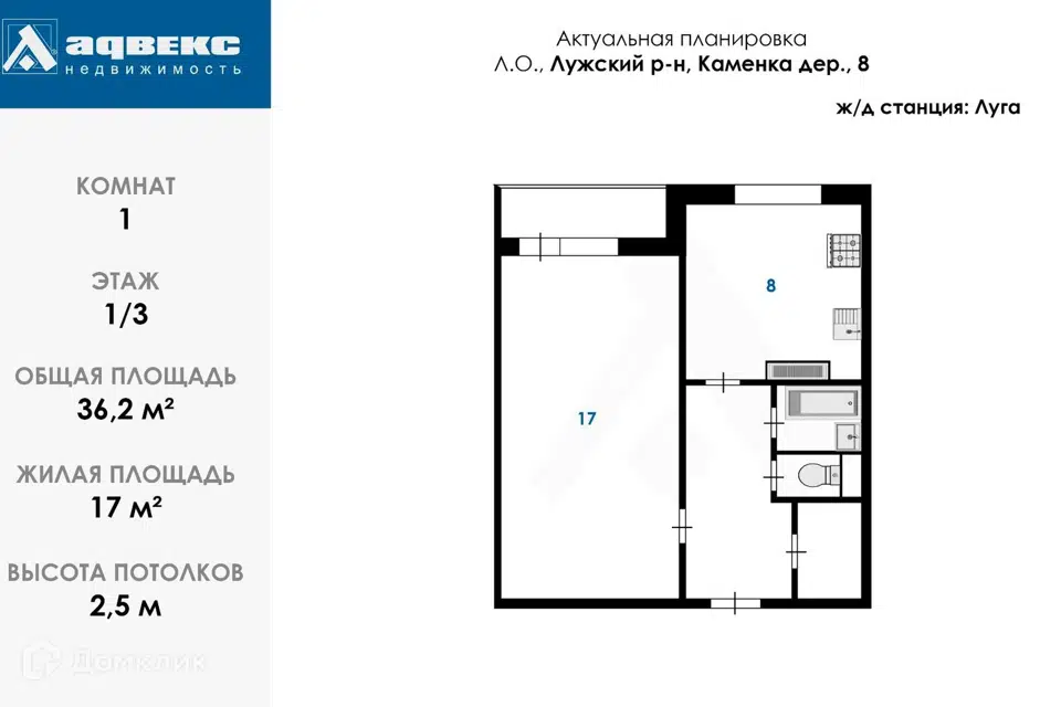 1-комн. кв., 36.2 м², 1/3 этаж