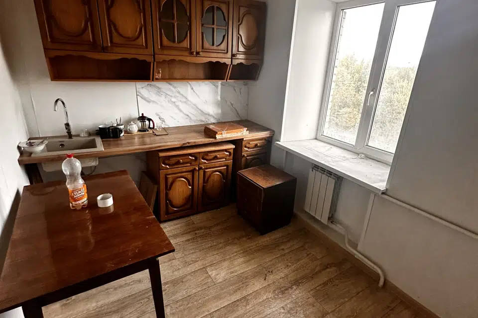 Общ. Пл. -35 кв. М, кухня -7 кв. М, комната — 17 кв. М, на 2 этаже в очень тёплом кирпичном доме, вода приносная из колонки у дома (можно подвести воду в квартиру). Дополнительно на территории дома есть сарай для хранения крупногабаритных и бытовых вещей.