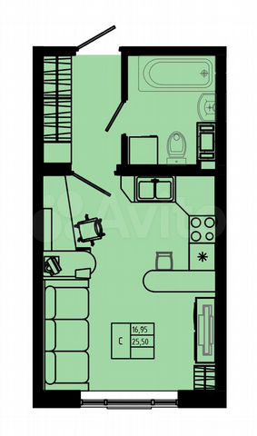 Свободная планировка, 18.6 м², 1/5 этаж