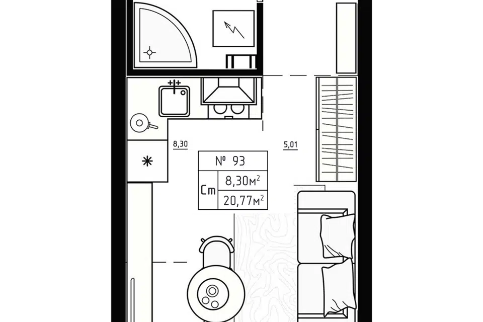 Студия, 20.77 м², 2/4 этаж