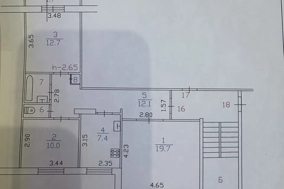 3-комн. кв., 56.8 м², 3/4 этаж