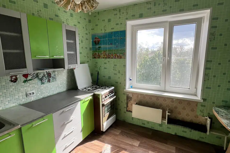 - Кухня 6 кв.м.- просторная, освобождена от мебели.