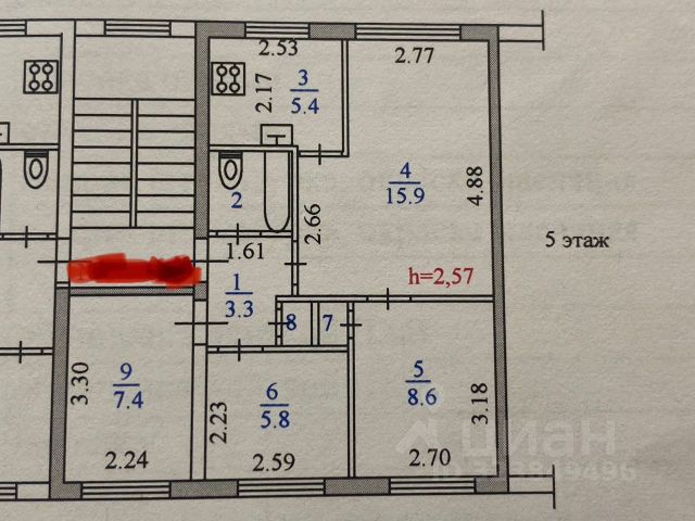 3-комн. кв., 65.6 м², 4/5 этаж