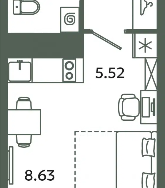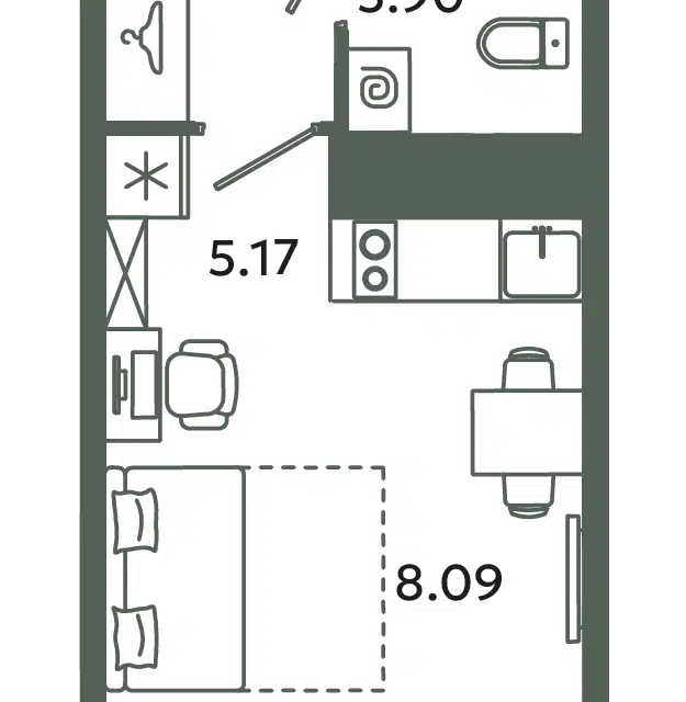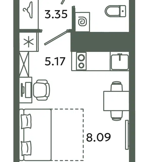 Студия, 23.96 м², 9/12 этаж