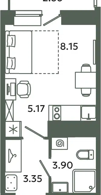 Студия, 26.7 м², 2/12 этаж