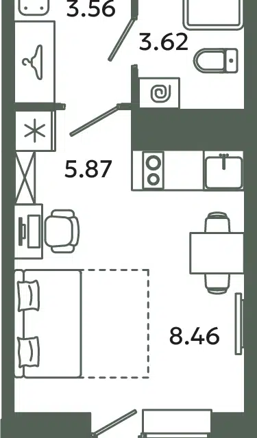 Студия, 19.8 м², 3/12 этаж