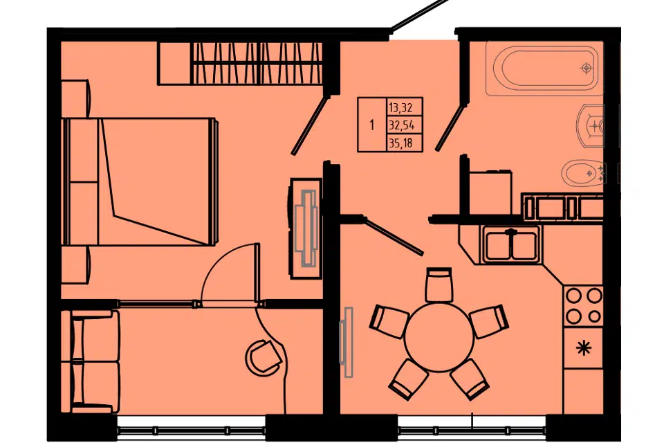1-комн. кв., 34.8 м², 6/8 этаж