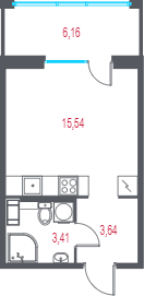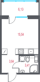 Студия, 24.3 м², 9/13 этаж