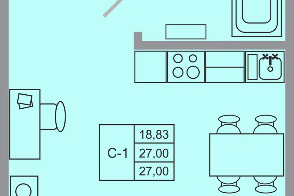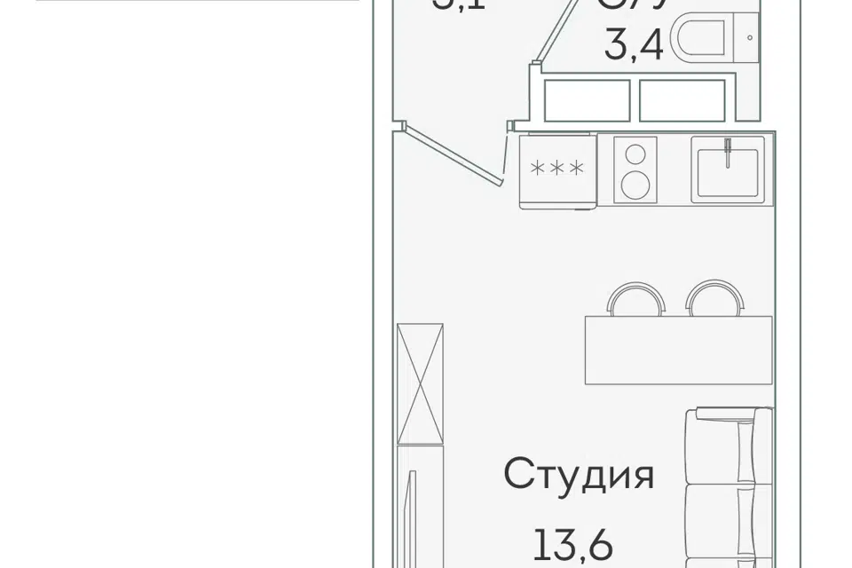 Студия, 24.1 м², 9/12 этаж
