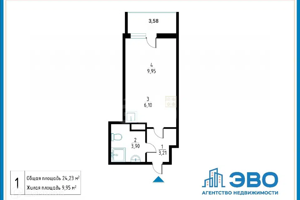 Студия, 24.23 м², 3/12 этаж