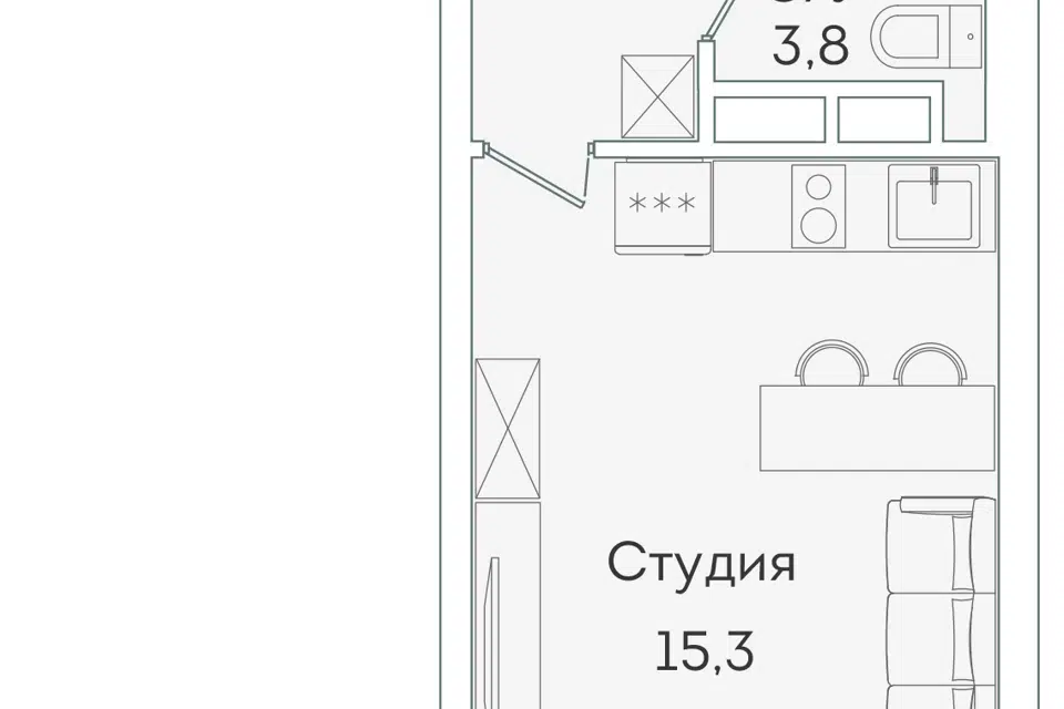 Студия, 20.5 м², 6/15 этаж