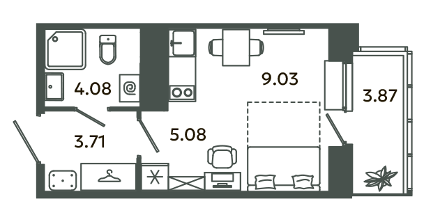 Студия, 22.7 м², 7/25 этаж