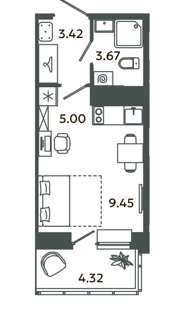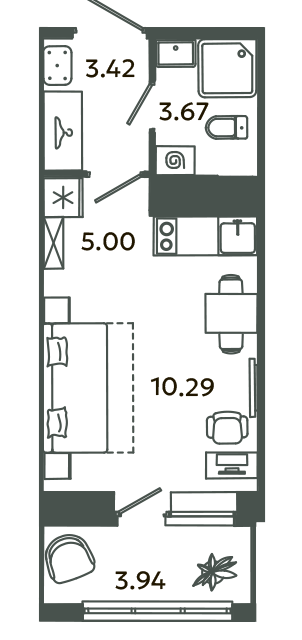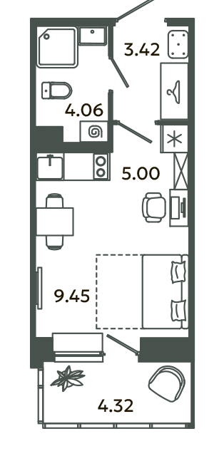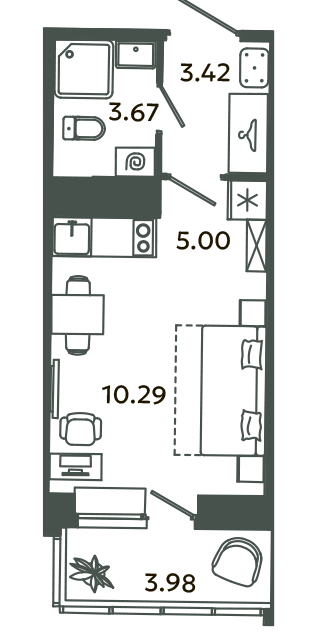 Студия, 18.7 м², 7/16 этаж