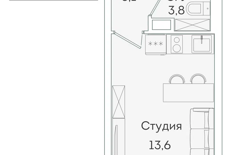 Студия, 29.5 м², 12/18 этаж