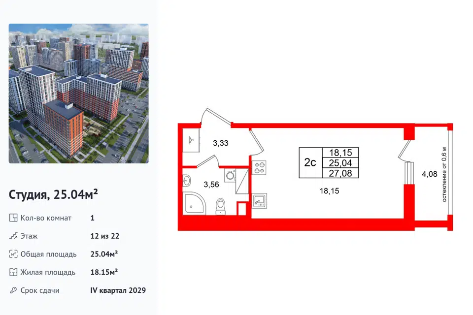 Студия, 25.04 м², 12/1 этаж
