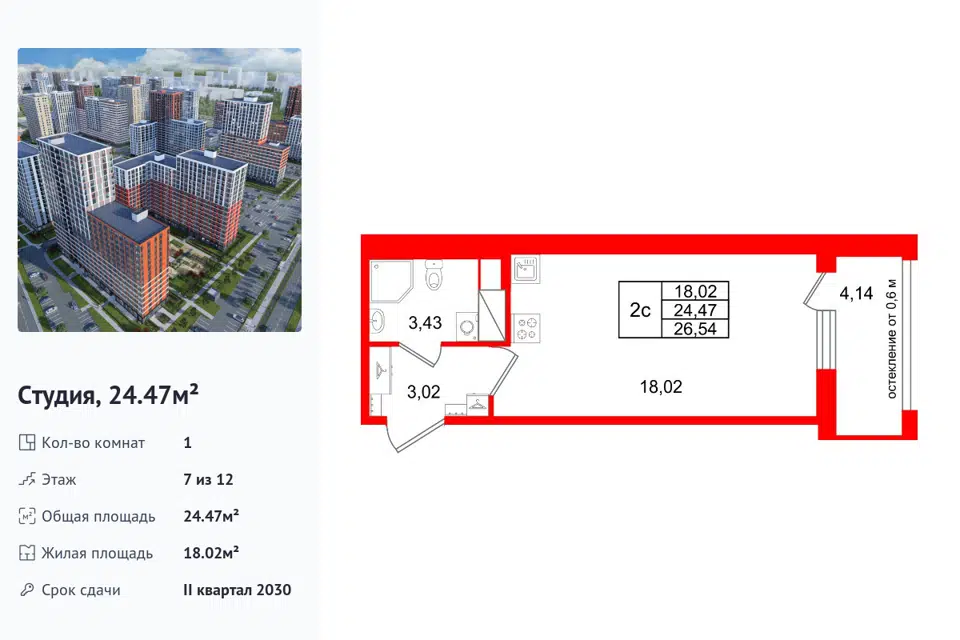 Студия, 24.47 м², 7/1 этаж