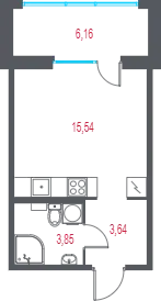 Студия, 15.5 м², 3/4 этаж