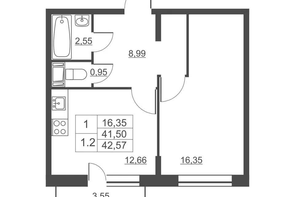 1-комн. кв., 41 м², 11/11 этаж