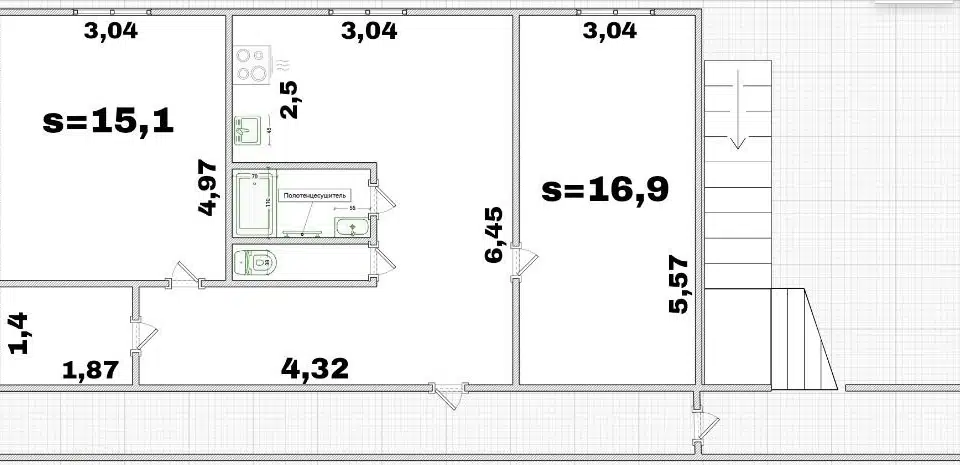 1-комн. кв., 30 м², 3/3 этаж
