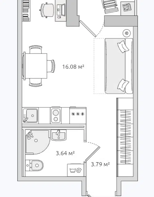 Студия, 20.7 м², 12/20 этаж