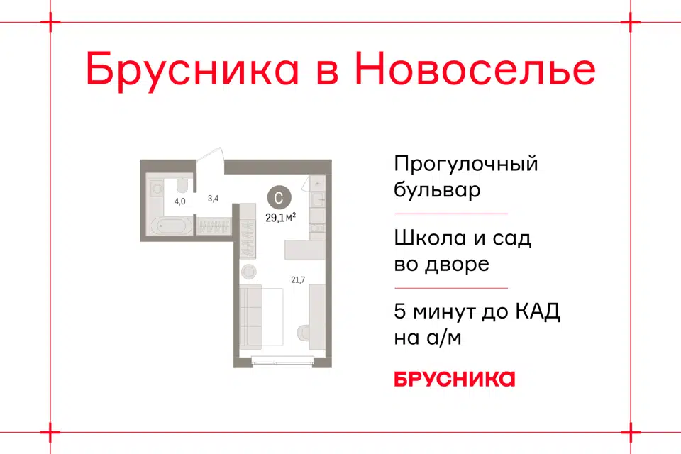 Студия, 29.11 м², 2/9 этаж
