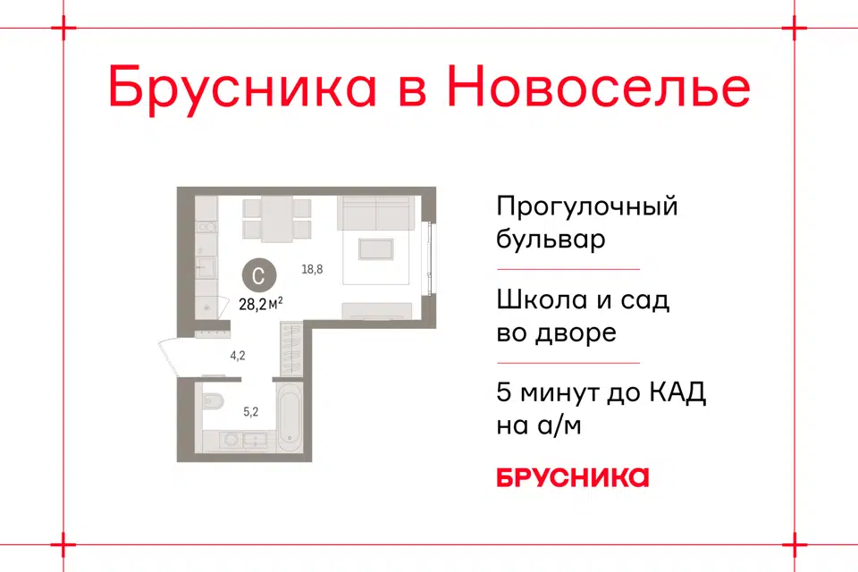 Студия, 28.21 м², 4/9 этаж