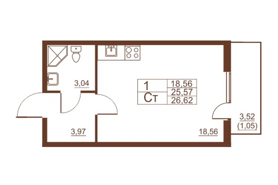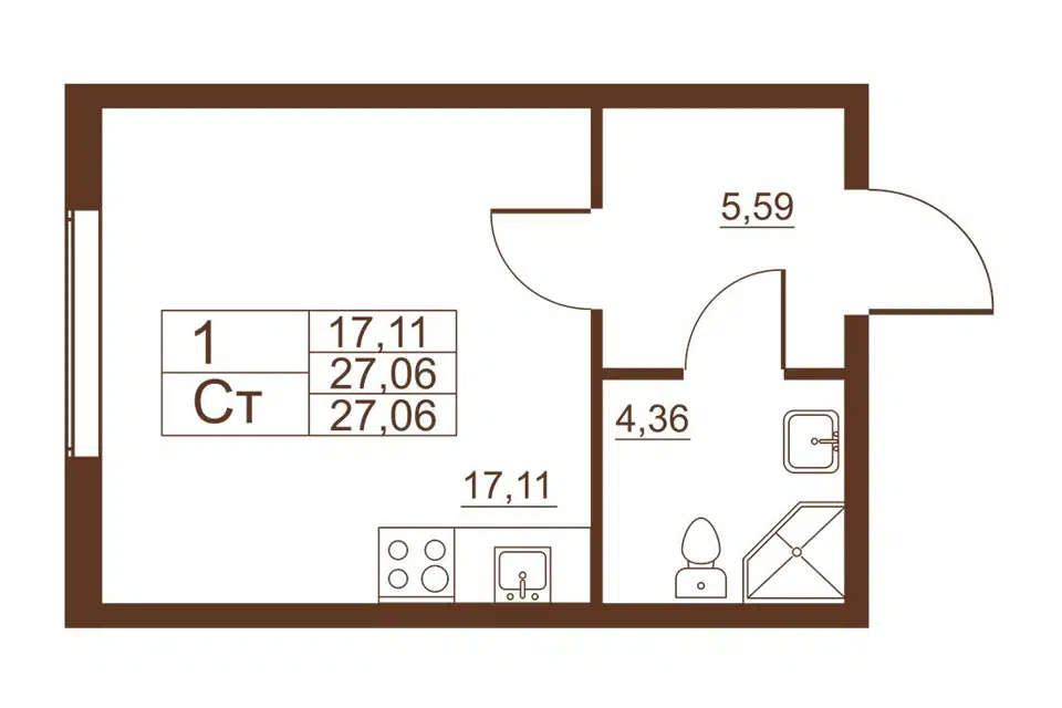 Студия, 27.06 м², 1/11 этаж