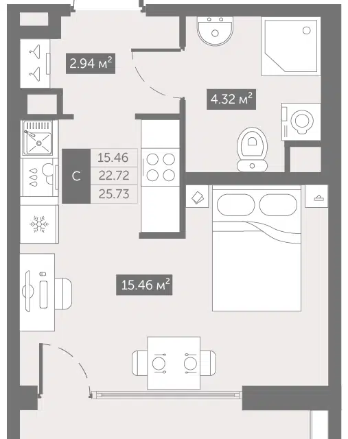 Студия, 25.73 м², 2/11 этаж