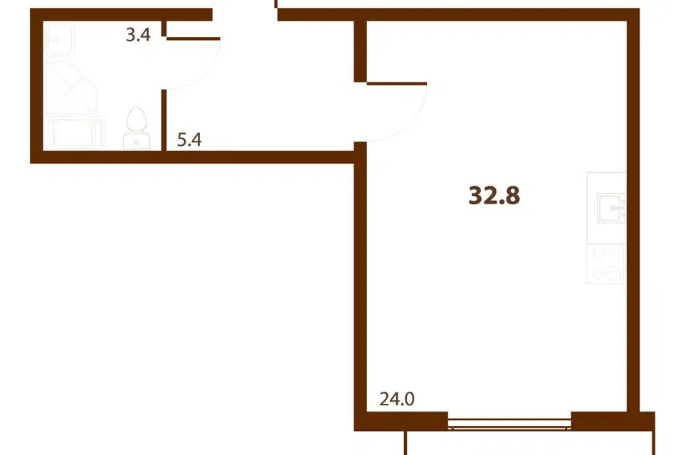 Студия, 32.4 м², 6/11 этаж