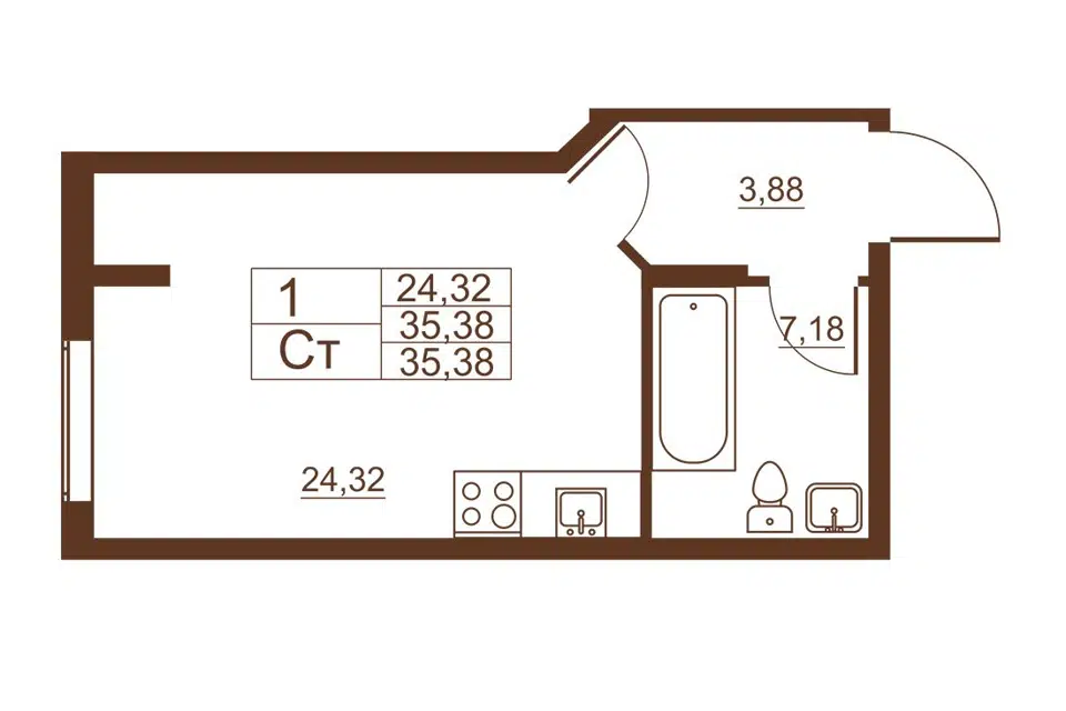Студия, 35.38 м², 1/11 этаж