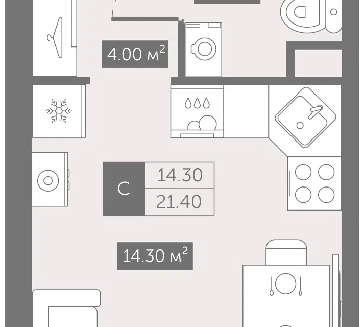 1-комн. кв., 17.59 м², 11/13 этаж