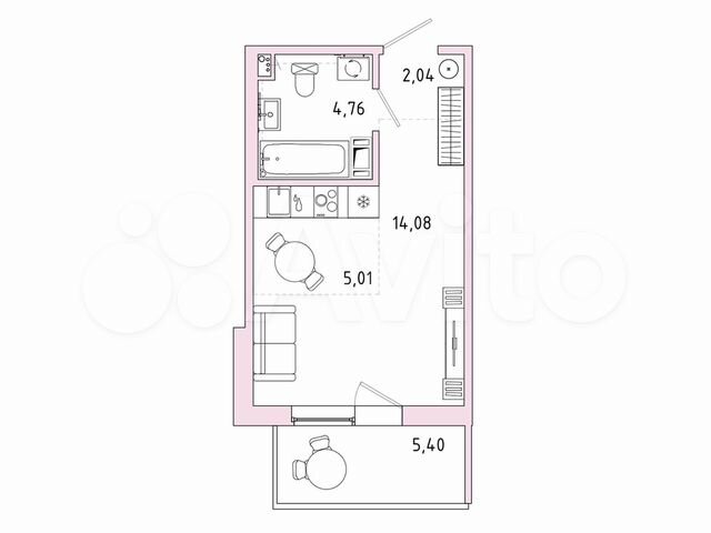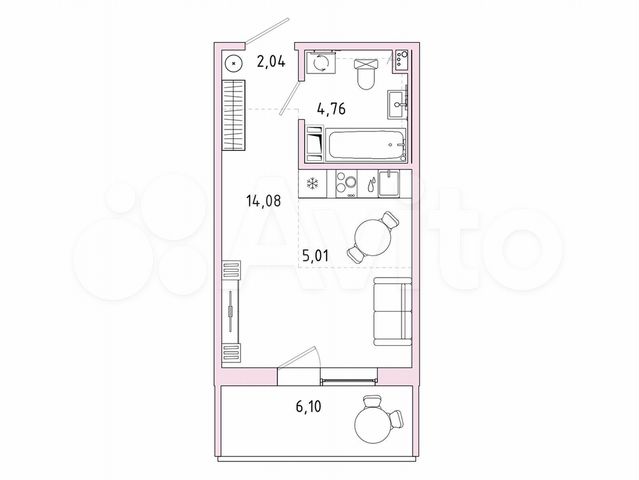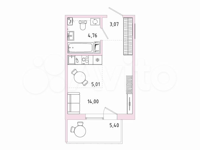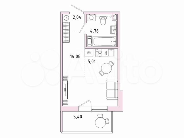 Студия, 27.5 м², 4/9 этаж