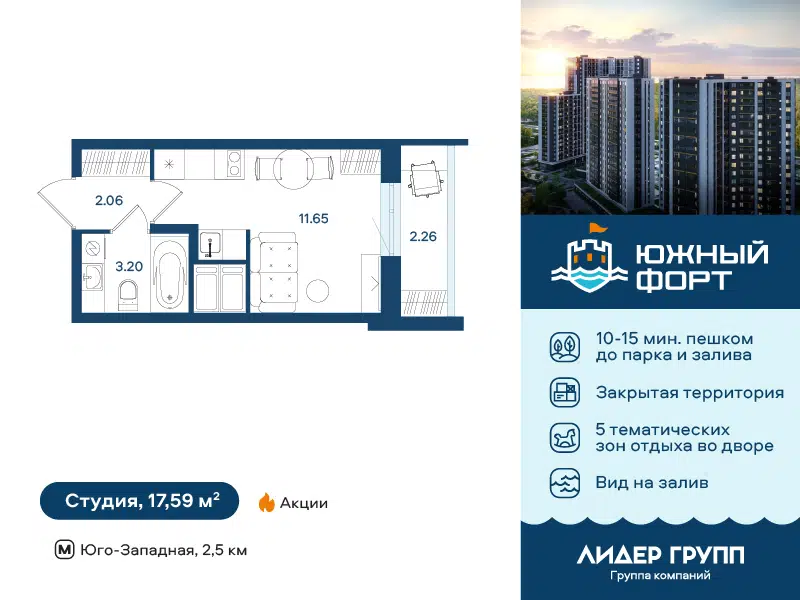 Студия, 17.61 м², 11/25 этаж