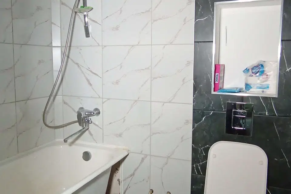 Совмещённый санузел оборудован всем необходимым для удобства использования. К сожалению, отметим, что квартира требует ремонта, что является прекрасной возможностью обустроить жильё полностью под себя и свои предпочтения.