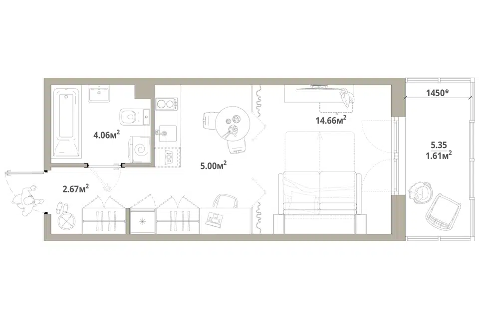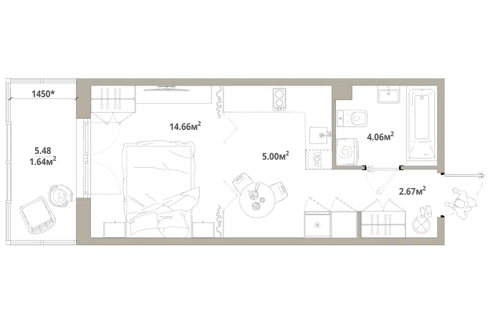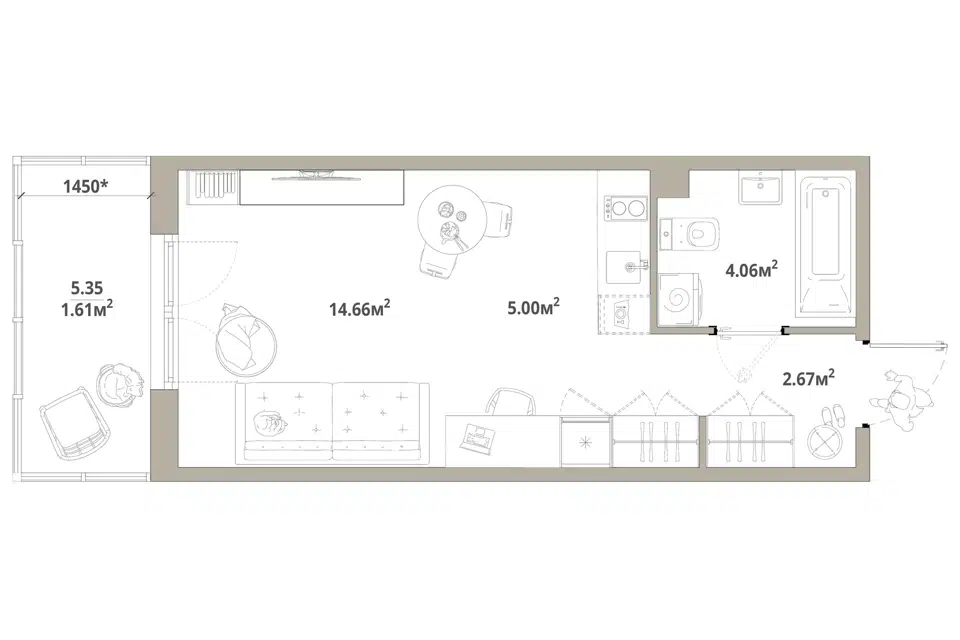 Студия, 25.24 м², 1/12 этаж