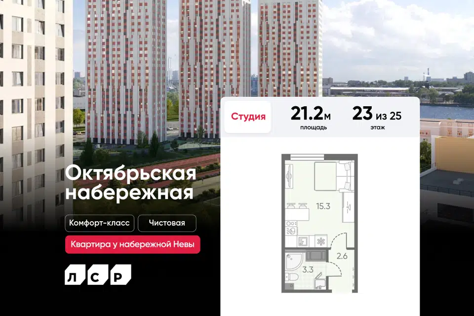 Студия, 21.2 м², 23/25 этаж