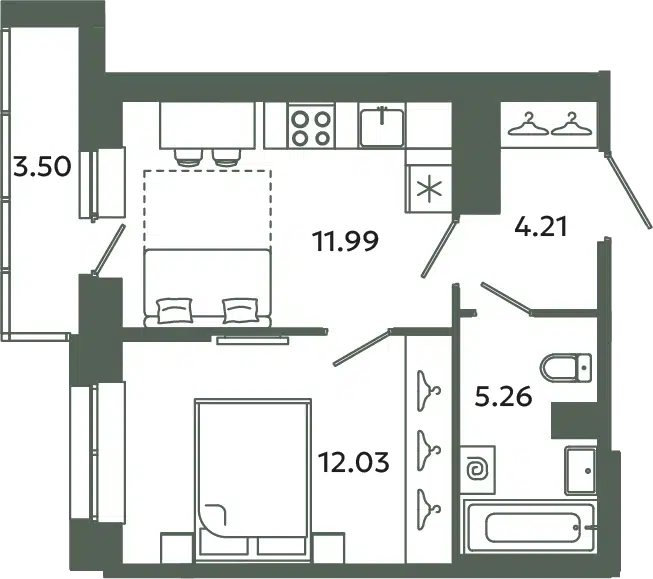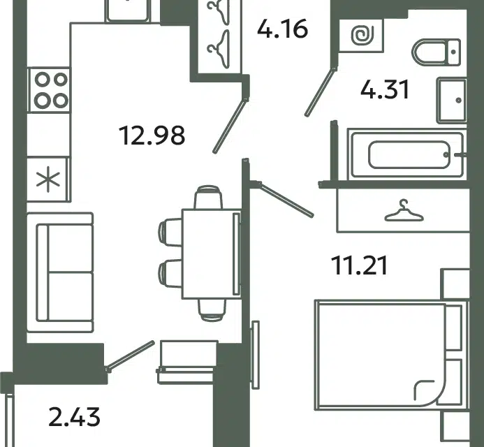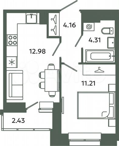 1-комн. кв., 34.43 м², 3/12 этаж