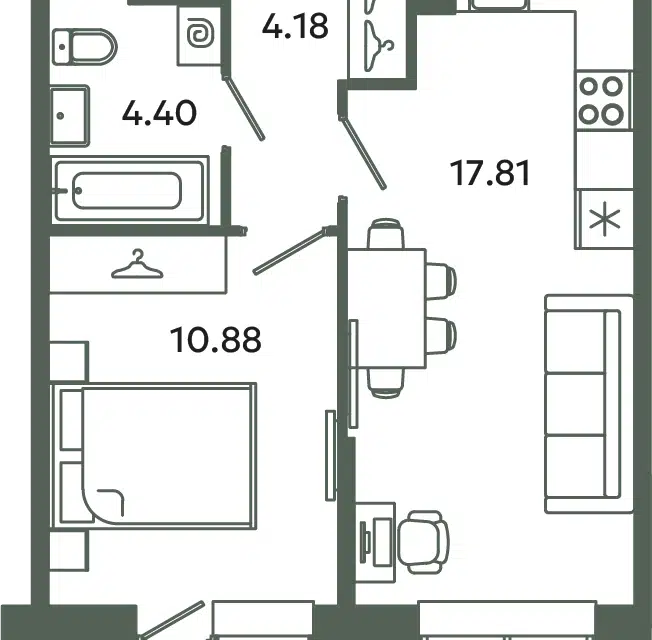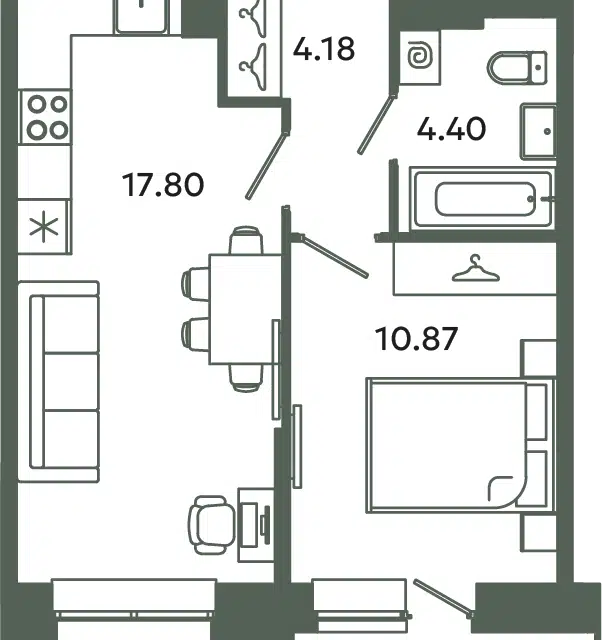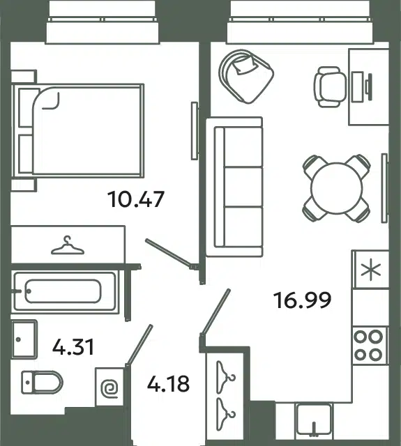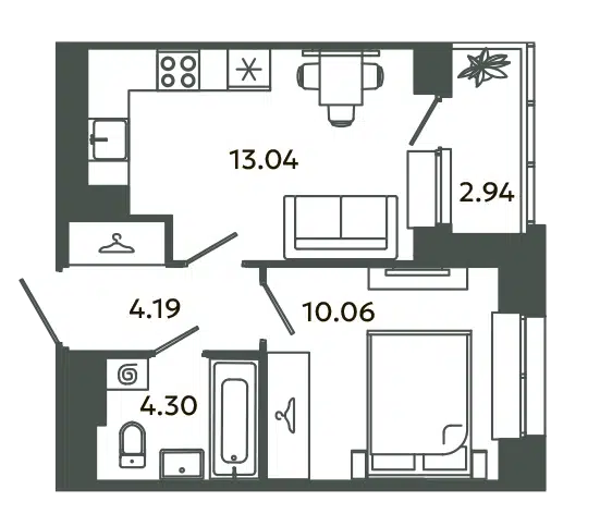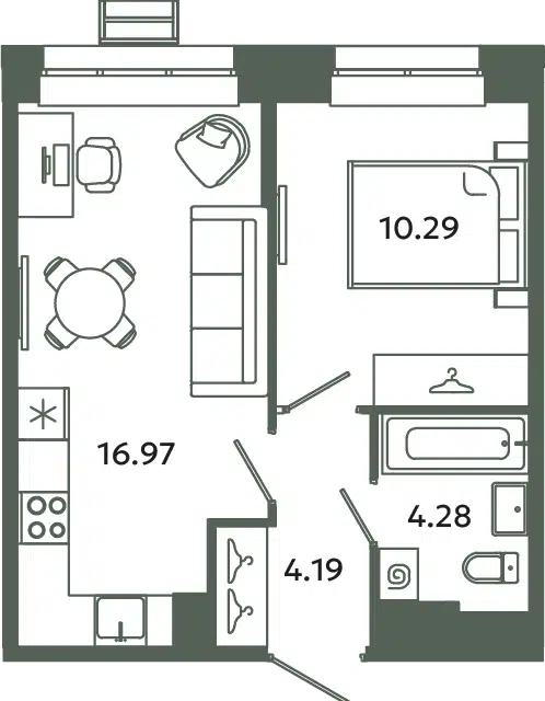 1-комн. кв., 34.57 м², 10/12 этаж