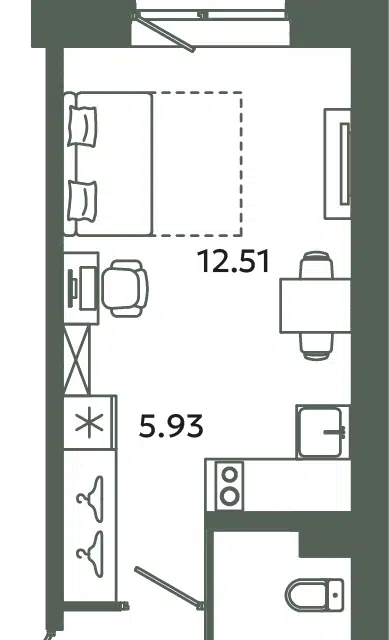 Студия, 26.7 м², 2/12 этаж