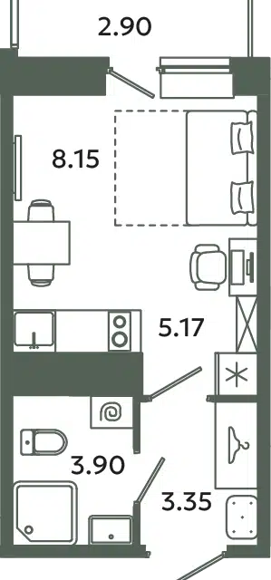 Студия, 28.4 м², 11/12 этаж