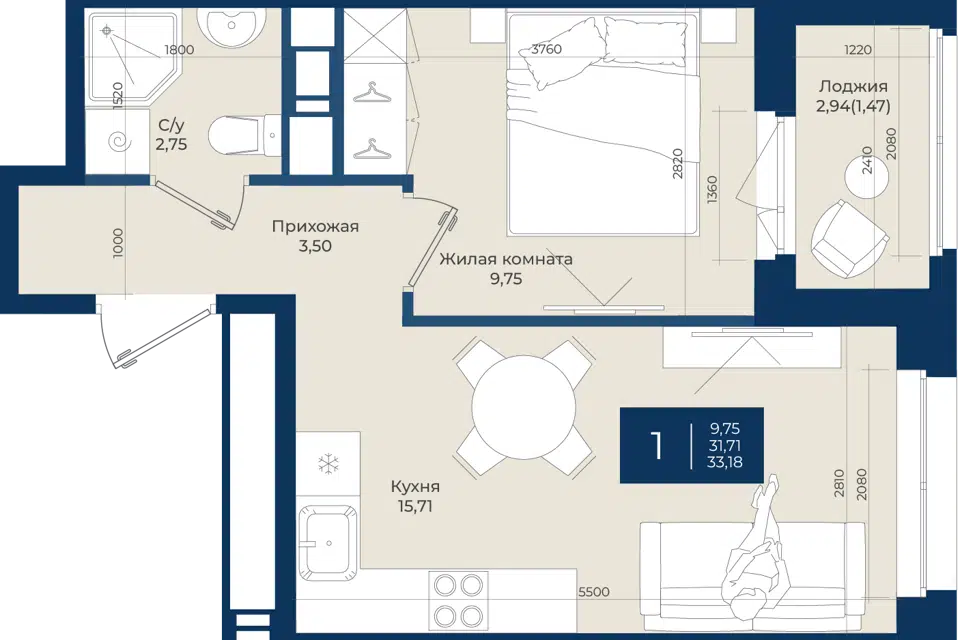 1-комн. кв., 33.18 м², 2/12 этаж
