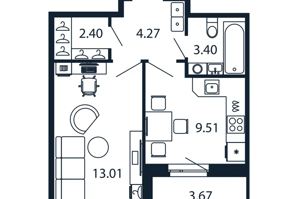 1-комн. кв., 38.16 м², 9/12 этаж