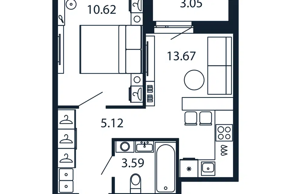 1-комн. кв., 34.53 м², 3/12 этаж