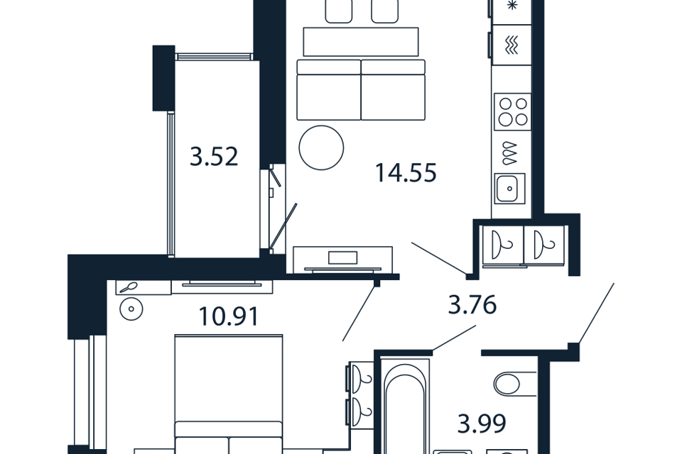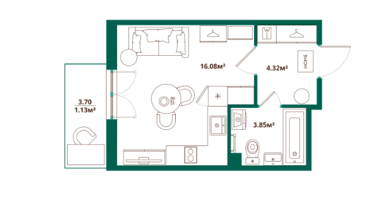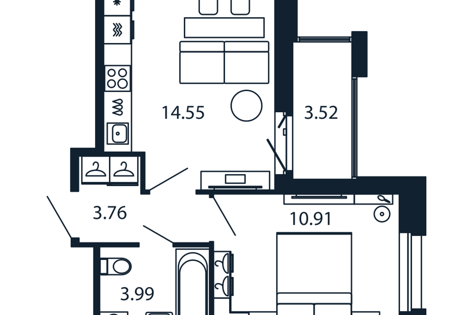 1-комн. кв., 33.1 м², 3/13 этаж