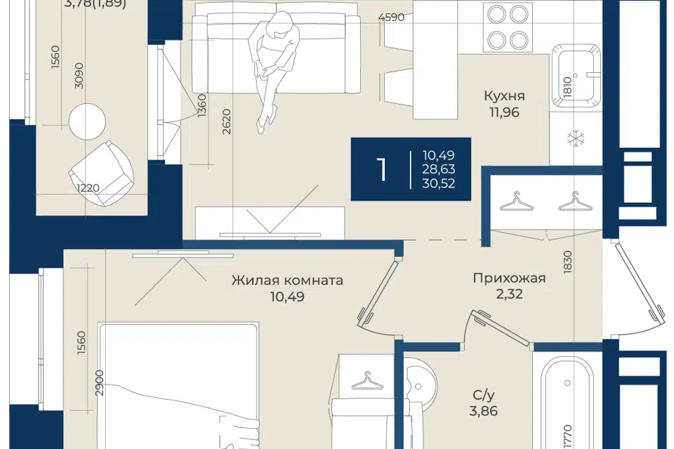 1-комн. кв., 30.52 м², 1/12 этаж