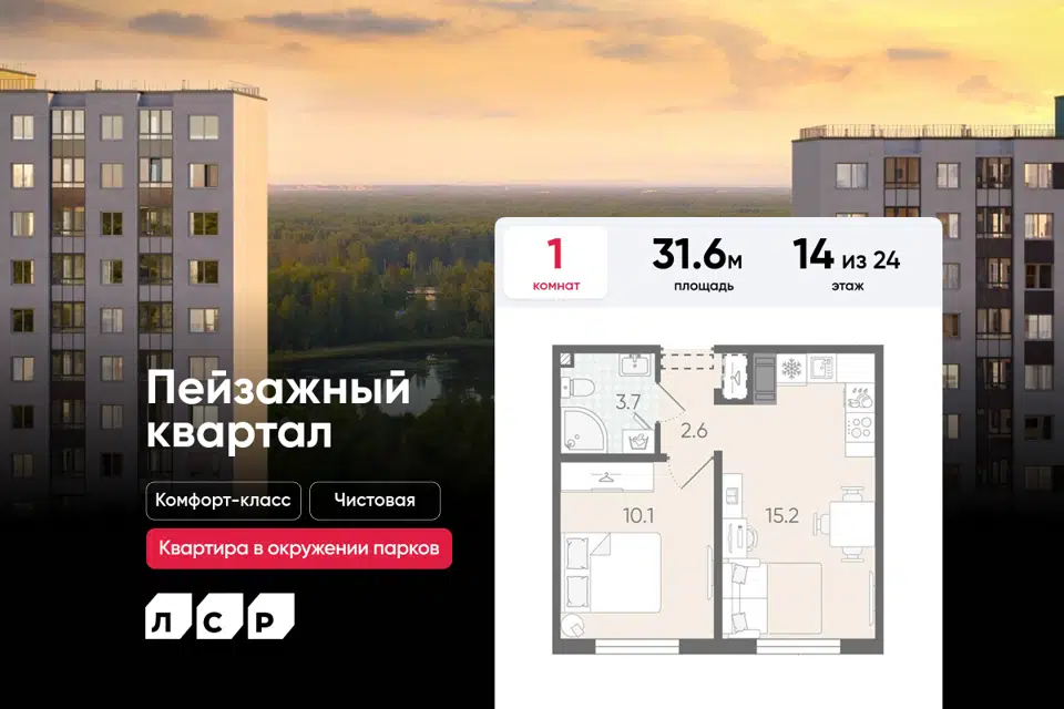 1-комн. кв., 31.6 м², 8/24 этаж