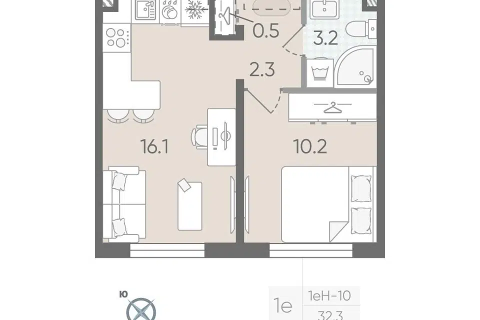 1-комн. кв., 32.3 м², 8/23 этаж